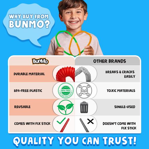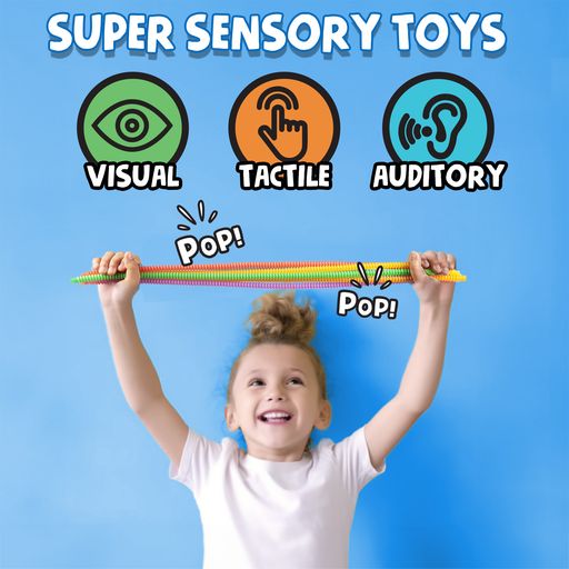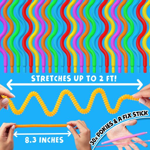 Pokies Pop Tubes stimulate the creative craft by providing the means to create structures, shapes, or objects; your imagination is the limit. And, because of this facet, these Pokies Pop Tubes double as S.T.E.M learning toys! We've included a fix stick in this pack of sensory toys so that you can play all day without the lingering worry. Pokies Pop Tubes are BPA-free, non-toxic, and safe as kids' toys.