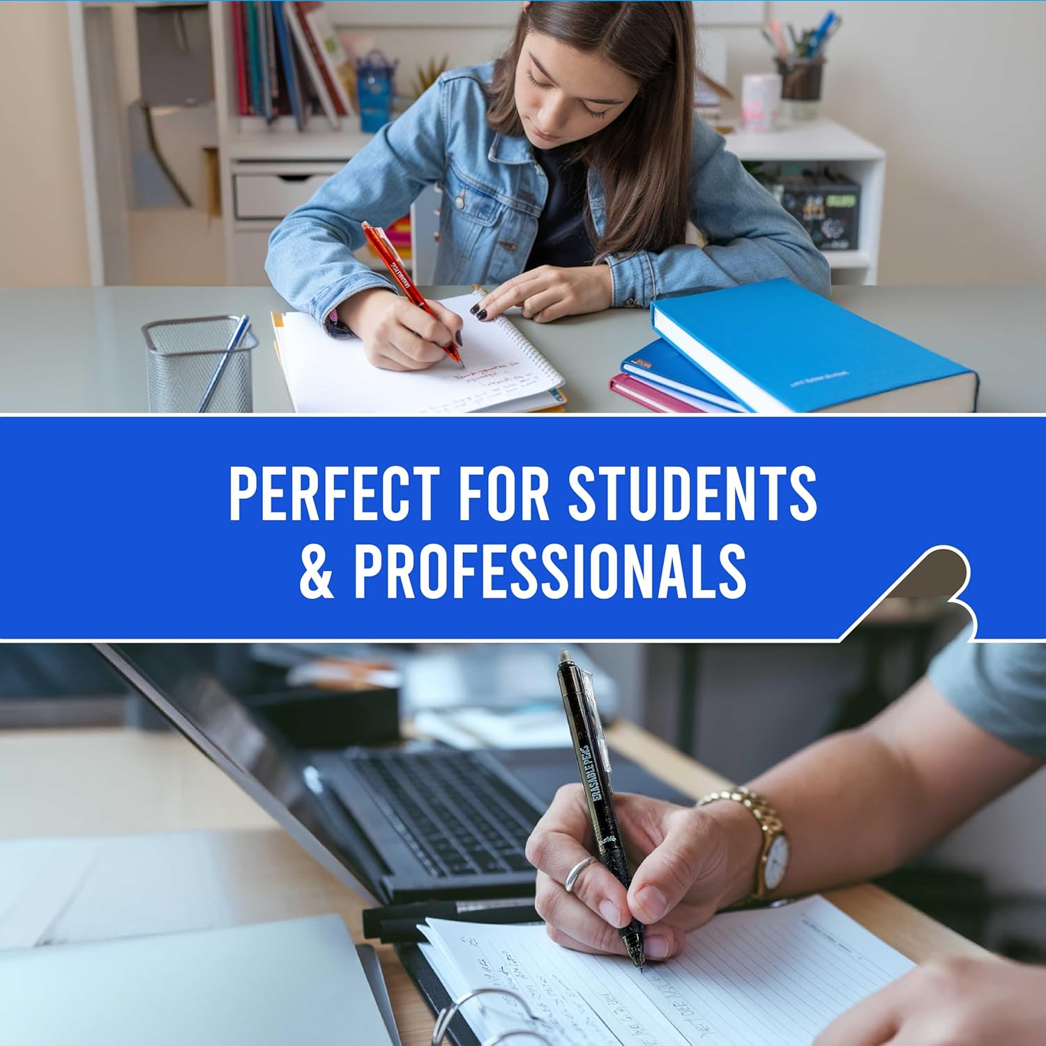 No Mistakes, Just Erase!: Made with advanced erasable gel ink, these ballpoint pens erase cleanly with zero residue. Simply use the eraser end to quickly fix any mistakes, making these gel ink pens the best choice for your next note, drawing or doodle!