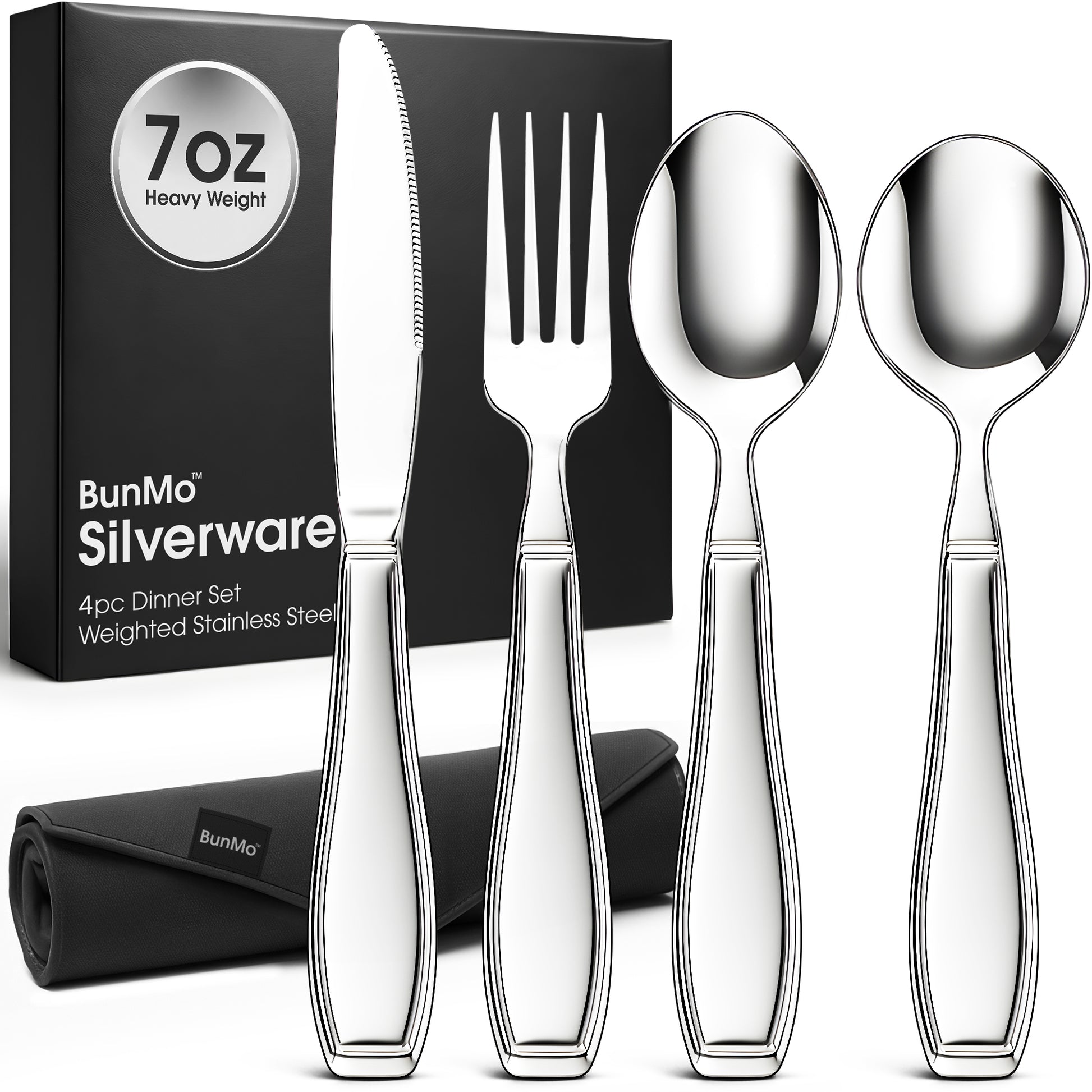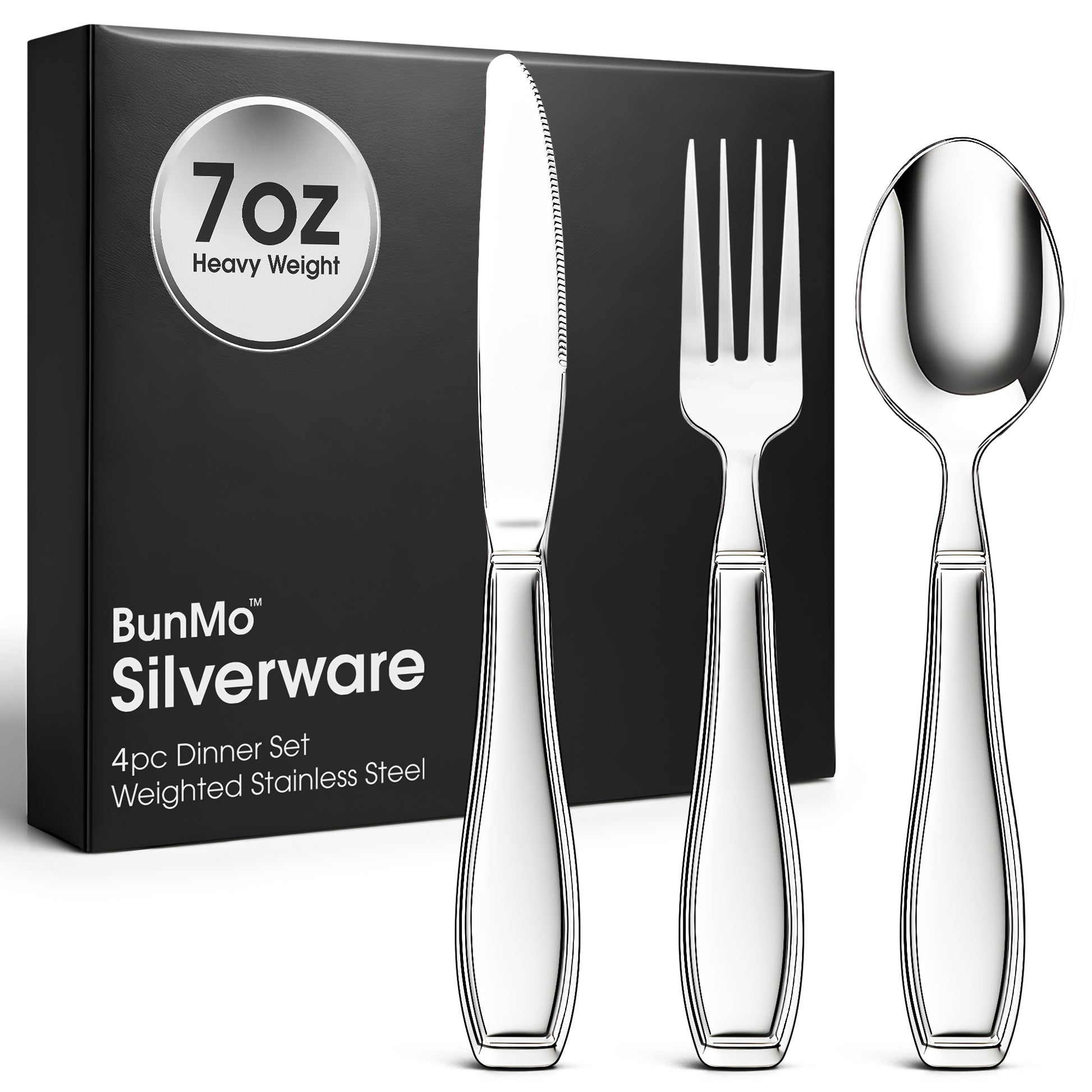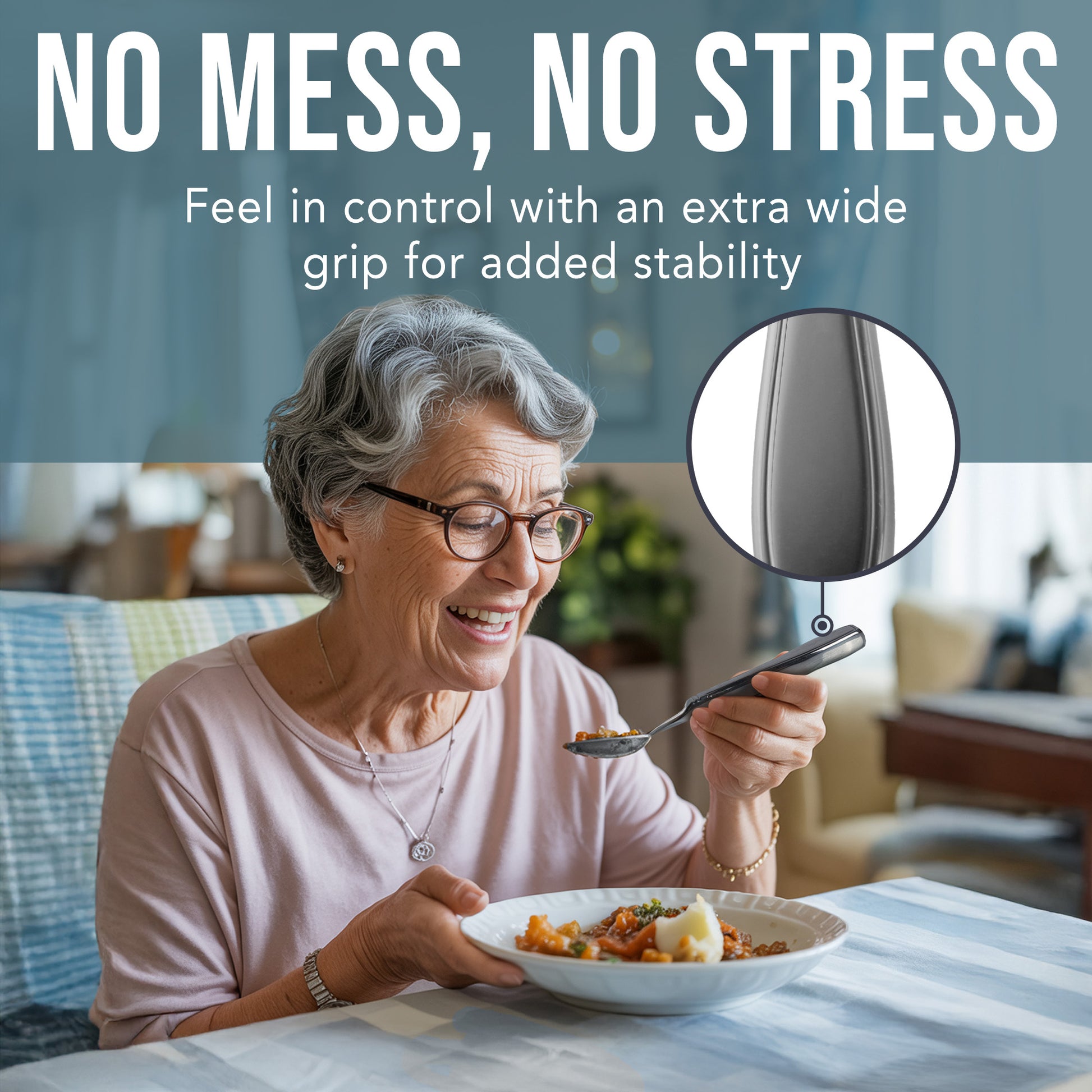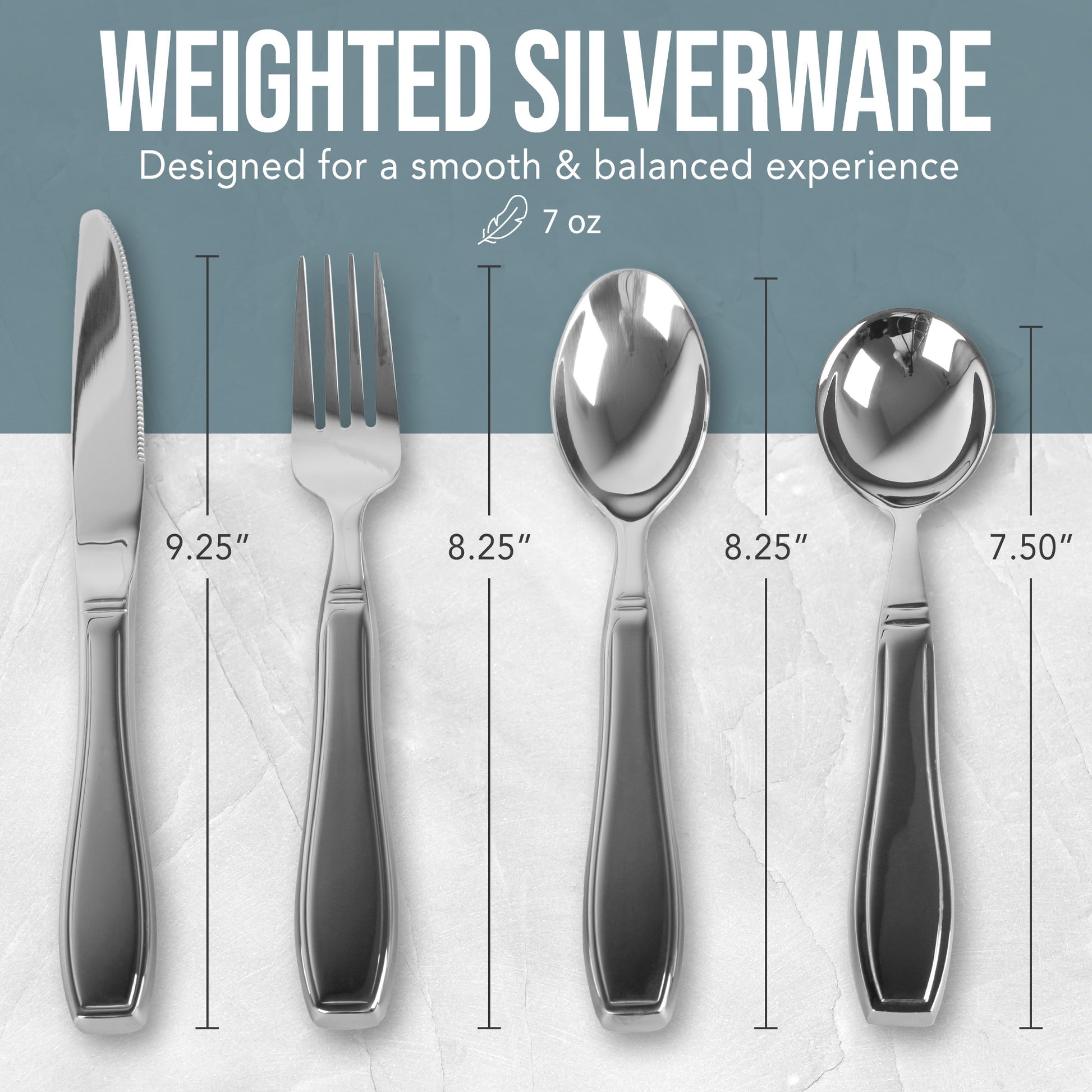 The Heavy Weighted Utensils Set is designed to help those who need a little comfort and support when it's time for a great meal. It can be a challenge to enjoy a simple meal when you suffer from tremors, shaking hands, or Parkinson's Disease. That's why we created more brilliant, more effective weighted utensils. The utensils feature a heavier handle with a balanced weight. Great for seniors, those with disabilities, and anyone who needs a bit more support at the table. Available in 3 & 4 piece sets.