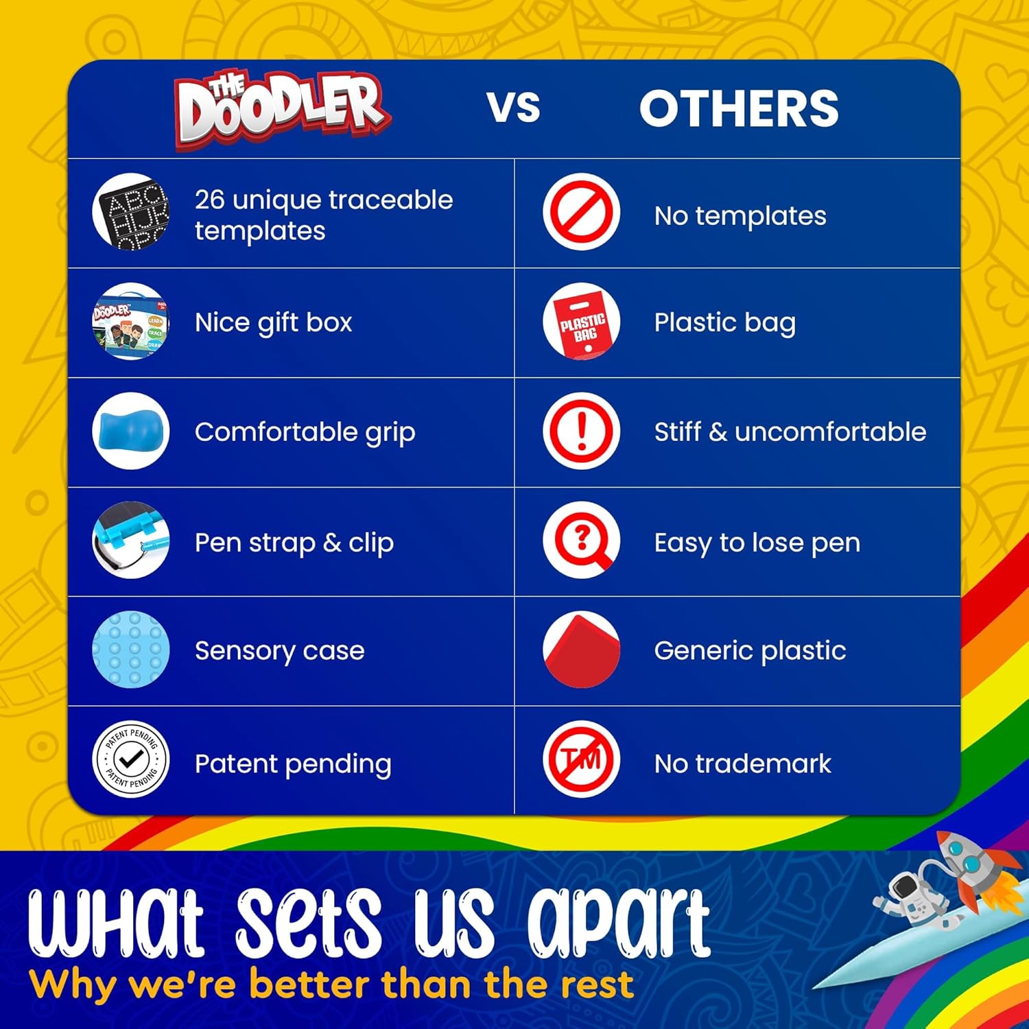 26 Unique Activities - Our doodle pad includes 13 double-sided inserts with 26 activities for endless fun. Trace, color, learn letters, numbers, and more! Keep your young ones entertained for hours - perfect for budding artists and learners.