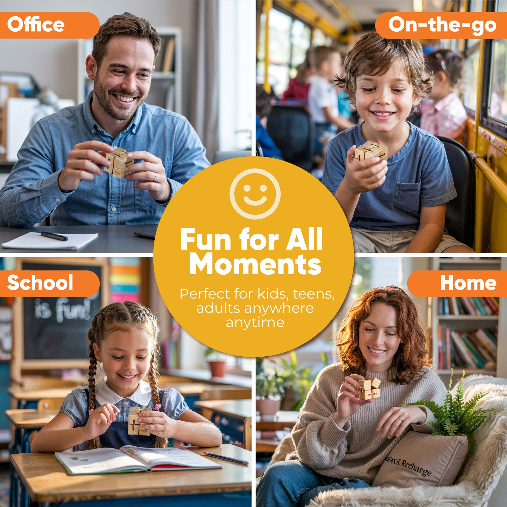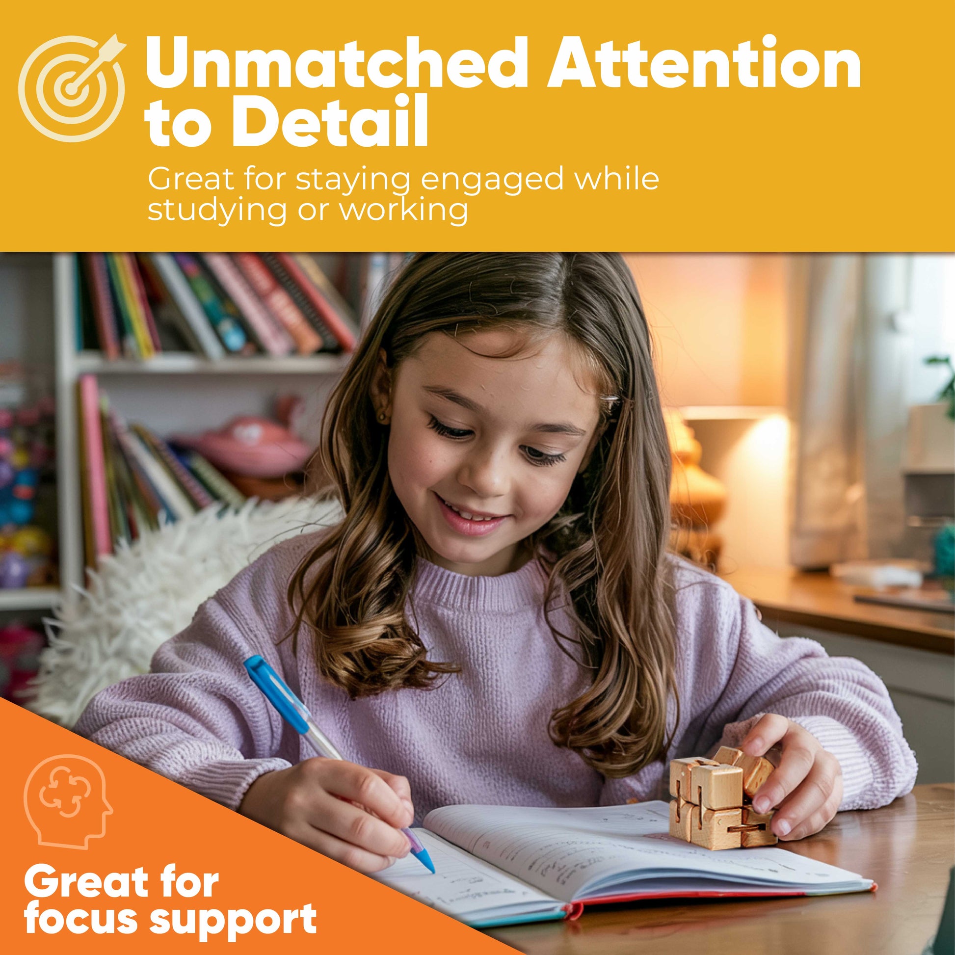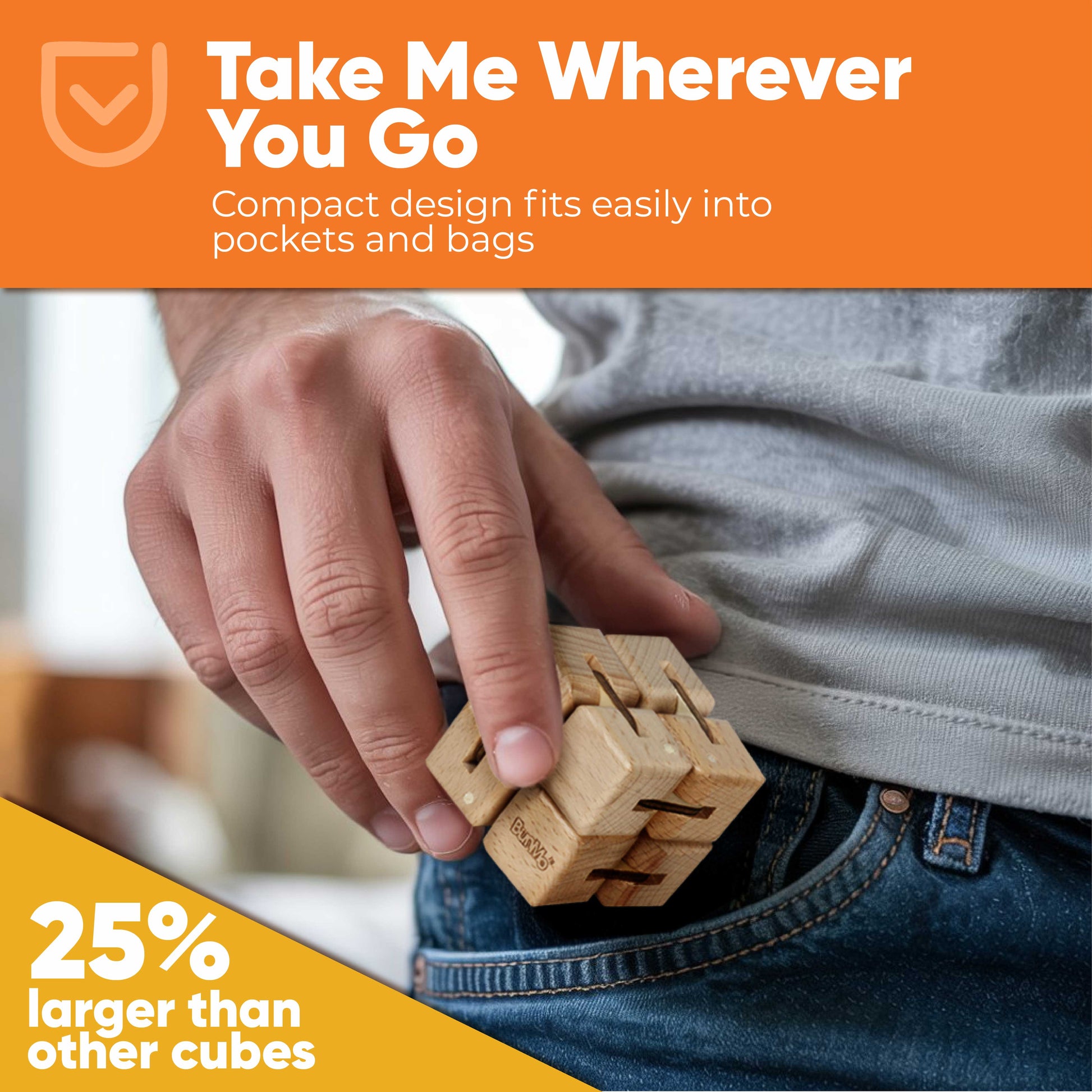 The first Wooden Infinity Cube Fidget Pack is here! You spoke; we listened. We have refined this eco-friendly Beechwood Infinity Cubes past clicking noises into a more natural, calming sound. Using this fidget toy at your office desk won't disturb your great workflows. Trust us, the best fidget toys for adults are the ones that don't get in your way. This fidget infinity cube for adults is made from high-quality Beechwood and proven to last. The adult fidget toys Beechwood is non-toxic, dent-proof, and safe for all-day use. And, to prevent splinters, we've added rounded edges.